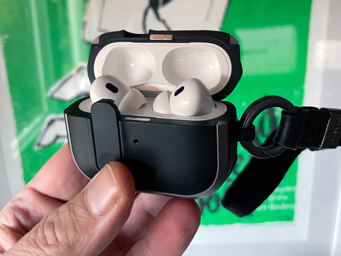 Im Alltag merkt man schnell: Das Odyssey ist kein Leichtgewicht. Ohne Karabinerhaken bringt es 41,5 Gramm auf die Waage – deutlich mehr als die typischen Silikonhüllen. Wer bisher ein dünnes Case gewohnt war, wird überrascht sein, wie massiv das Metall wirkt. Dafür gibt es aber auch ein Plus an Sicherheit. Beim Radfahren, im Zug oder auf Reisen hatte ich die AirPods immer griffbereit, ohne dass ich Angst haben musste, dass das Case irgendwo rausfällt oder verkratzt. Gerade mit dem Wrist Strap fühlt sich das fast schon wie ein Mini-Gadget fürs Handgelenk an – praktisch, wenn man seine AirPods ständig parat haben möchte.